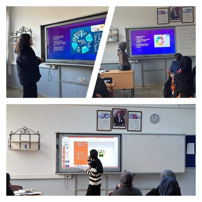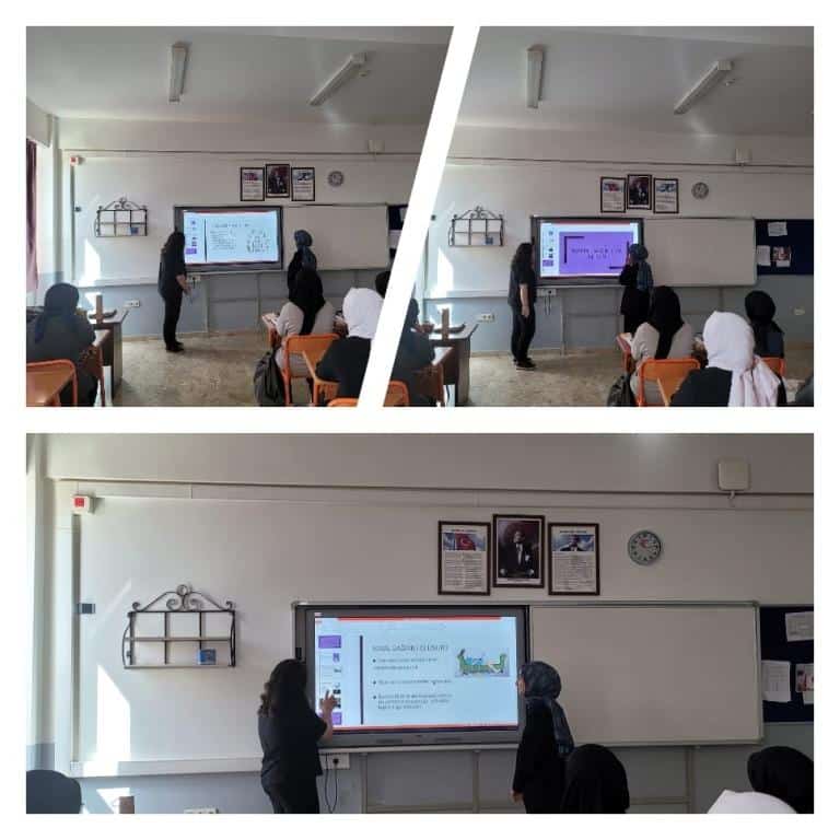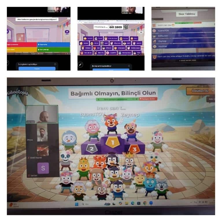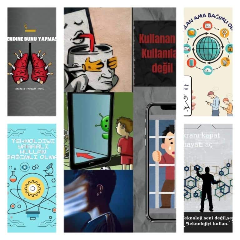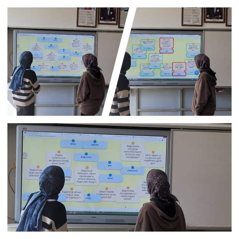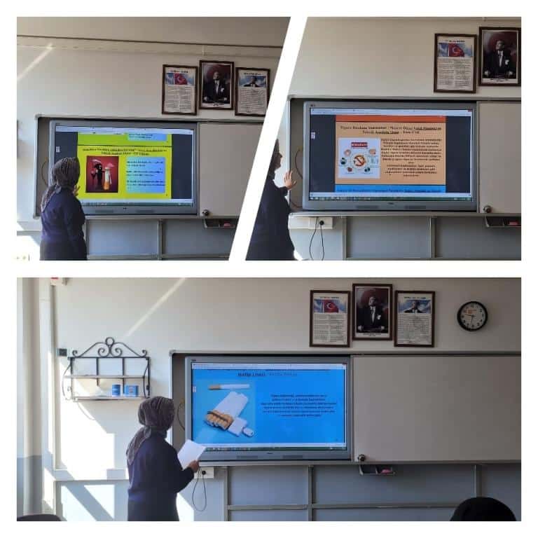 Canva ve story jumper uzerinde ortak hazırlanan "Teknoloji Bağımlılığı, Sigara, Alkol ve Madde Bağımlılığı" konularındaki sunumlarını yaptılar